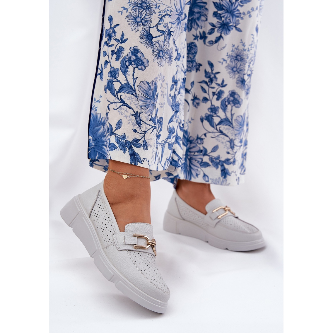 Os mocassins de couro femininos com os detalhes dourados de Vincez 88007 em cinza claro e branco é a combinação perfeita de elegância e conforto, o que certamente complementará o guarda -roupa de todas as mulheres. Feito de couro natural de alta qualidade, esses sapatos são caracterizados por uma delicada cunha de 4,5 cm de alta, o que adiciona estilo e conforto todos os dias.