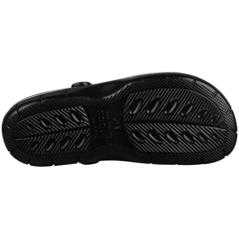 A sola sólida que não deixa marcas e com propriedades de absorção de choque foi projetada para garantir estabilidade e segurança em seus passos. Além disso, o material com que é feita a sola caracteriza-se por uma elevada resistência à flexão e ao esmagamento, contribuindo para a longa vida útil das socas.