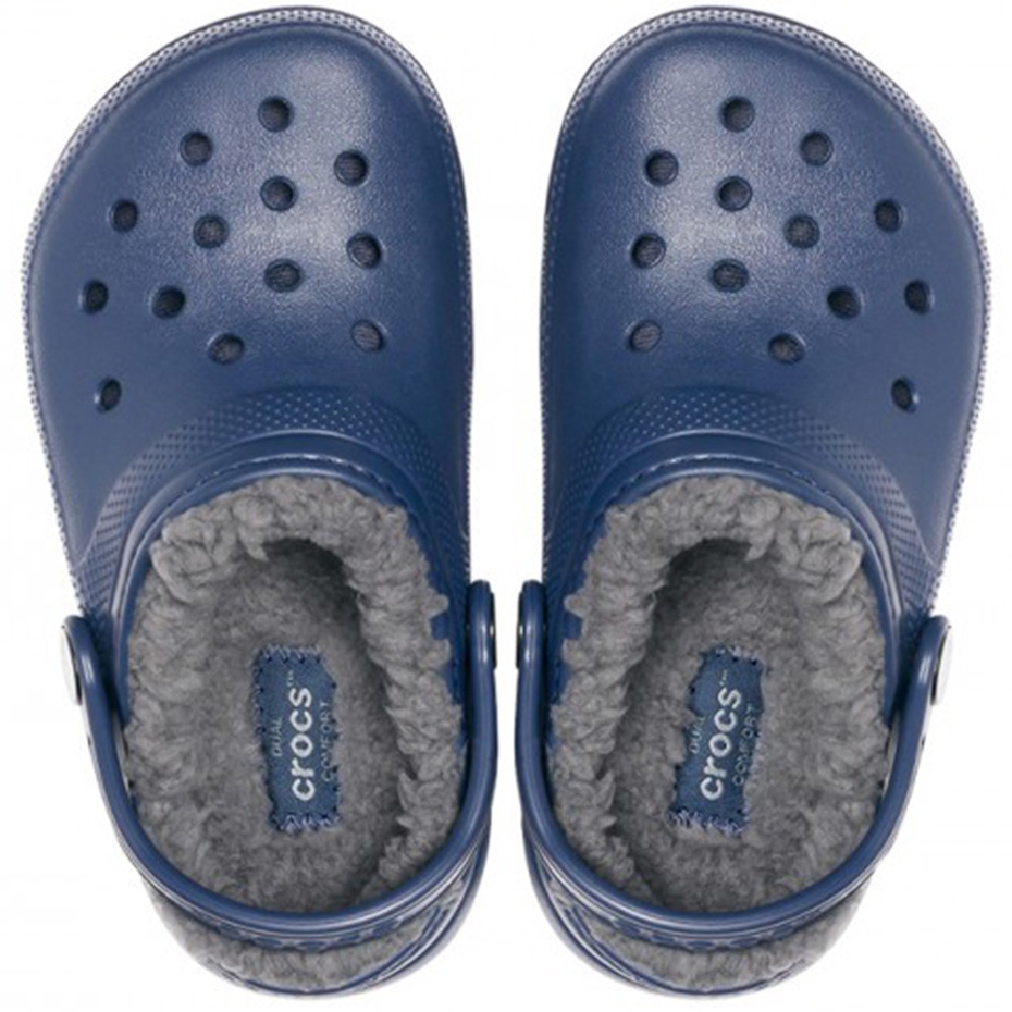 Detalhes: Tamancos infantis Crocs Lined Clog, azul marinho 207009 459
