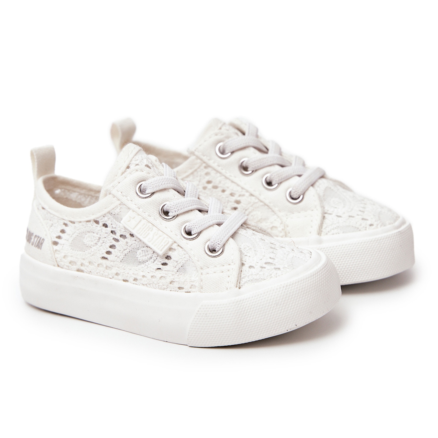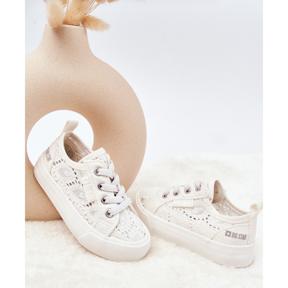 Big Star JJ374134 Tênis OpenWork - tênis brancos, leves e confortáveis para meninas, perfeitas para dias mais quentes. Feito de tecido respirável com um padrão de trabalho aberto, eles garantem uma boa circulação de ar e leveza do desgaste. Modelo escorregado, com elásticos imitando cadarços, o que facilita a instalação e o ajuste do sapato. Inserção de material macio e de borracha não deslizante Garantia e segurança todos os dias.