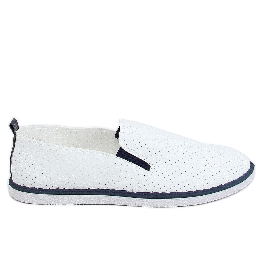 Aqui está a proposta perfeita para mulheres que procuram conforto e estilo todos os dias - tênis slip-on branco AA620 Navy. Estes elegantes sapatos distinguem-se não só pelas clássicas cores brancas, mas também pelos acessórios contrastantes que lhes conferem um carácter único. Confeccionados em delicado couro ecológico com textura perfurada, garantem conforto de uso e respirabilidade, o que os torna perfeitos para os dias de primavera.