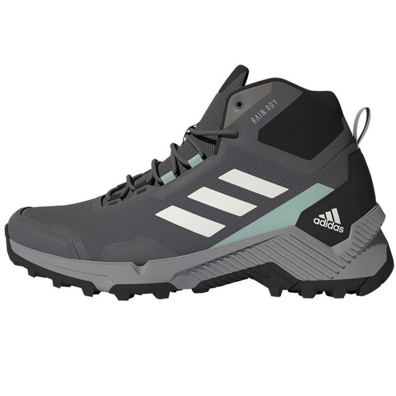 Adidas Eastrail 2 R.Rdy GY4177 Sapatos - sapatos de trekking de mulheres cinza combinando design de esportes com funcionalidade. O modelo com um corte mais alto e o laço clássico garante que a retenção estável do pé na trilha e na área urbana, e o acabamento cinza estético e moderado com o logotipo visível do fabricante enfatiza o caráter esportivo.