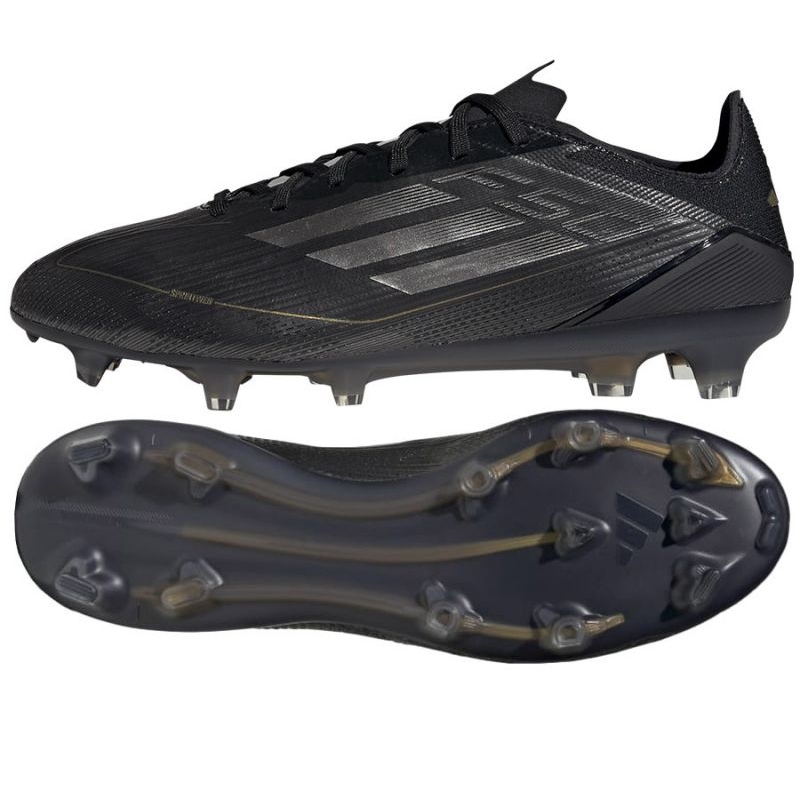 O modelo Adidas F50 Pro FG pertence à linha Predator, o que significa que foi criado para o controle preciso da bola e os movimentos dinâmicos no tom. O uso de engarrafamentos de tráfego plástico torna os calçados ótimos em superfícies naturais, oferecendo excelente aderência e estabilidade.