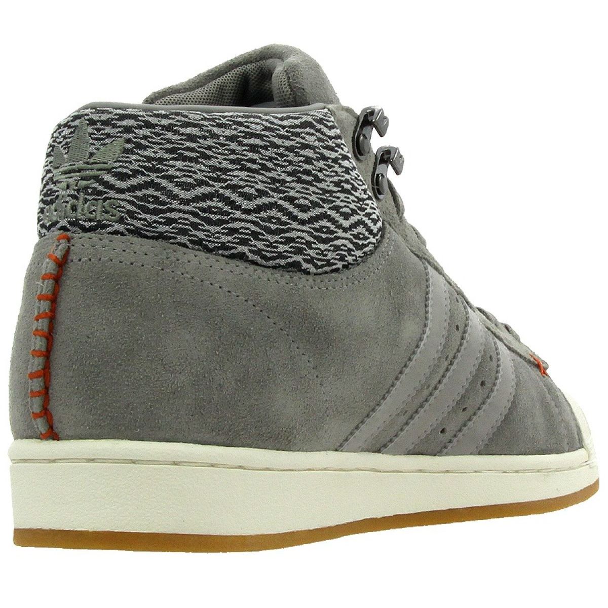Os calçados Adidas Originals Pro Model Bt M AQ8160 na cor cinza são uma excelente opção para homens que valorizam estilo e conforto. Calçados altos com atacadores combinam esportividade com elegância, o que os torna perfeitos tanto para o estilo do dia a dia quanto para looks de estilo de vida.