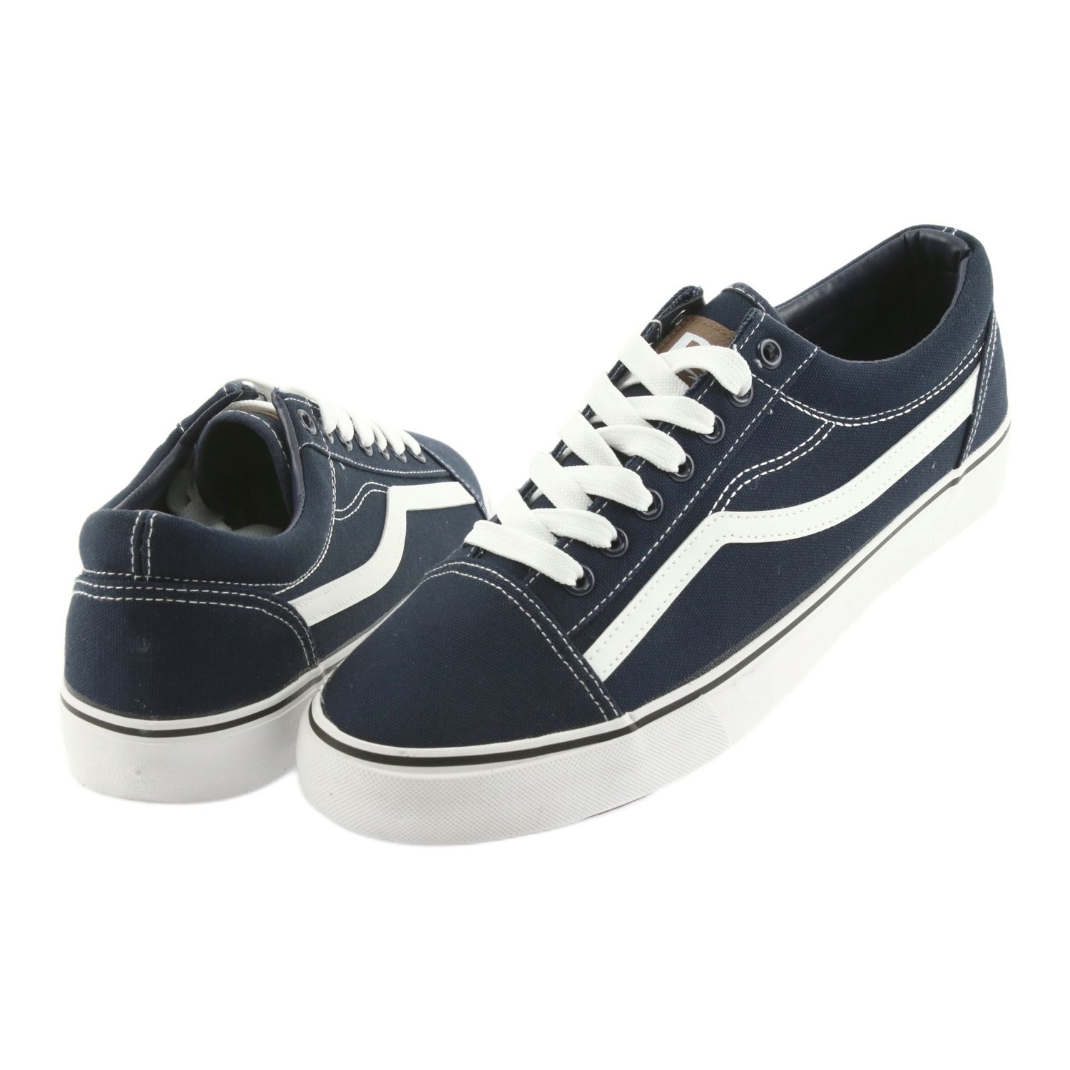 Detalhes: Tênis AlaVans amarrado azul marinho DK branco azul-marinho