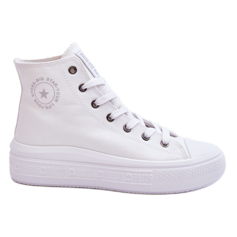 Os tênis brancos da alta estrela feminina são a escolha perfeita para mulheres que se concentram no estilo, conforto e aparência da moda. Feito de material têxtil de alta qualidade, esses tênis brancos são distinguidos não apenas por design atraente, mas também com funcionalidade. Na lateral da parte superior, há um logotipo decorativo de grande estrela, que lhes dá caráter e os torna um complemento perfeito para cada estilização casual.