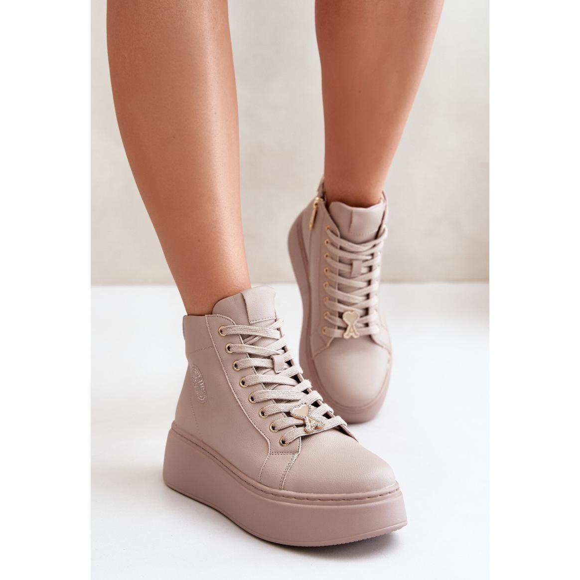 Detalhes: Tênis alto feminino de couro na plataforma Vinceza 66707 Bege