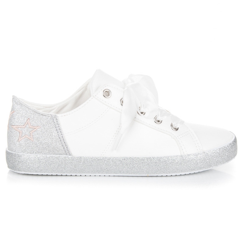 Detalhes: L&H Tênis amarrados com uma fita branco