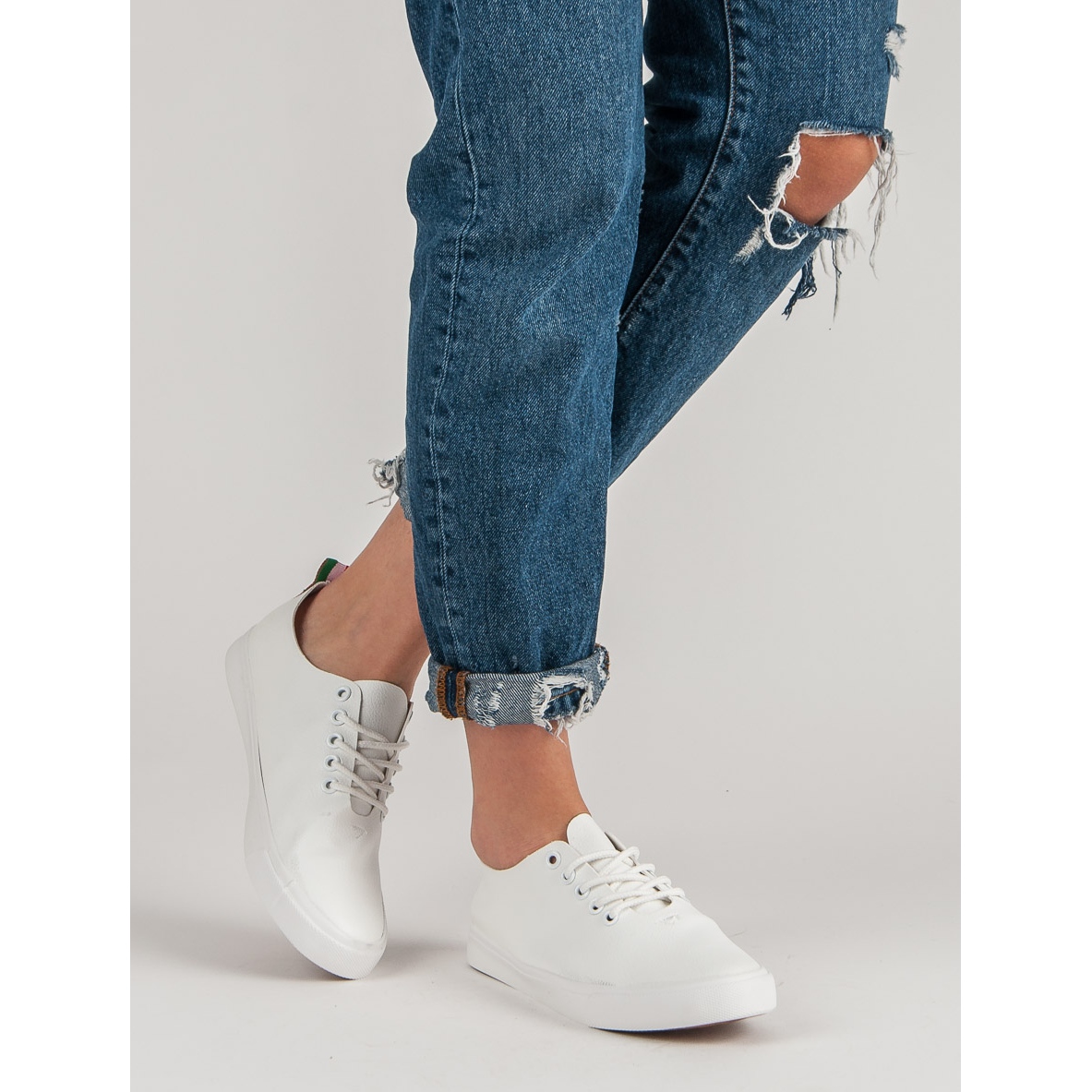 Os tênis brancos com cadarço são a escolha perfeita para toda fashionista que valoriza conforto e estilo. Estes sapatos leves e arejados adaptam-se perfeitamente ao ambiente jovem e o seu design simples faz com que combinem perfeitamente com vários estilos, especialmente com jeans.