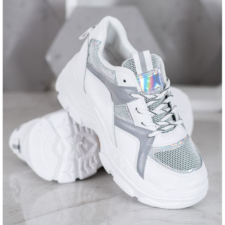 Descubra uma nova dimensão do streetwear com tênis decorativos brancos em plataforma alta do fabricante Sweet Shoes. Estes sapatos exclusivos são uma combinação perfeita de design moderno e conforto que certamente atrairão a atenção.