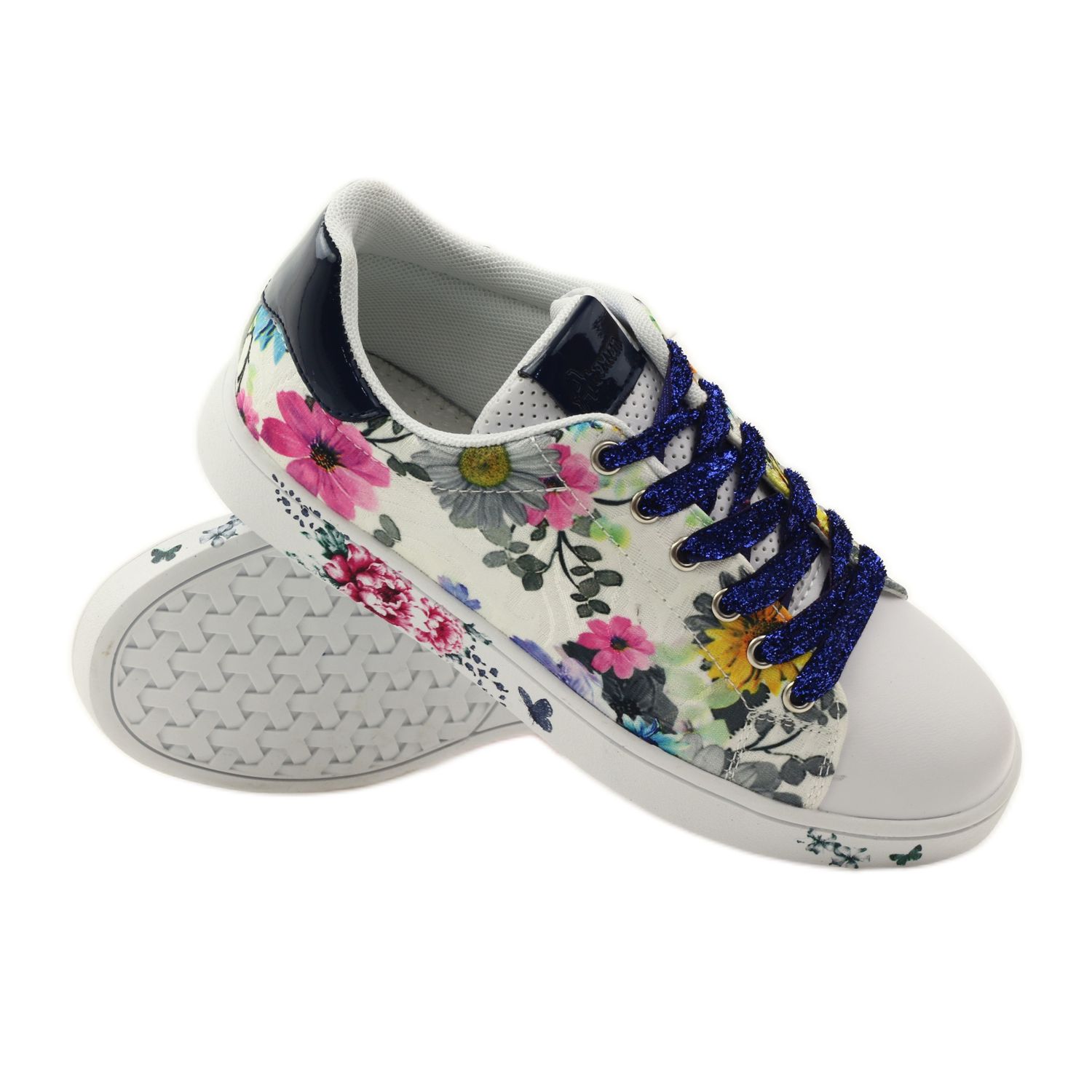 American Club American Club Tênis americano floral com incrustações de couro azul marinho rosa branco