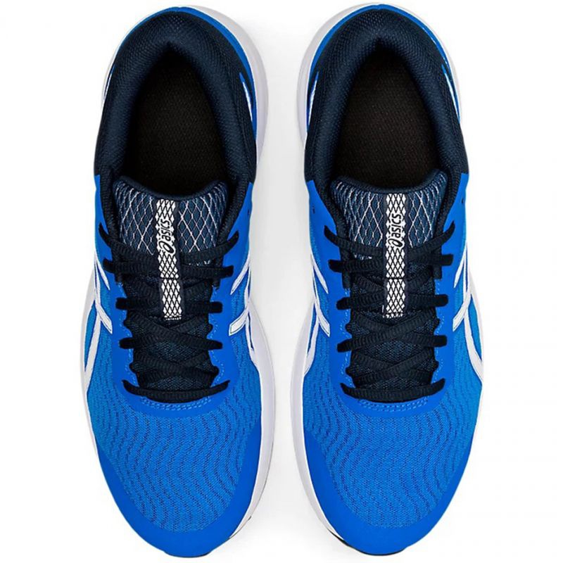 Descubra uma nova dimensão de corrida com os calçados masculinos Asics Patriot 12 na cor azul com detalhes em branco contrastantes (modelo 1011A823 413). Estes calçados exclusivos foram projetados para corredores que buscam conforto, suporte e excelente tração em superfícies duras.