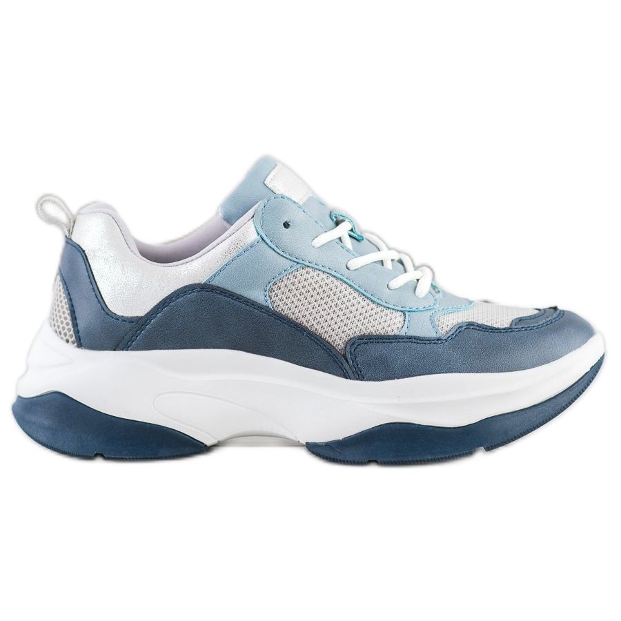 Apresentamos os tênis azuis da moda da marca Kylie, que se enquadram perfeitamente nas tendências atuais de calçados. Estes calçados esportivos clássicos confeccionados em material que imita couro se diferenciam por um cabedal composto por diversos elementos em tons de azul e azul marinho. Entre eles existe um material respirável com pequenos orifícios, que garante conforto mesmo durante o uso intensivo.