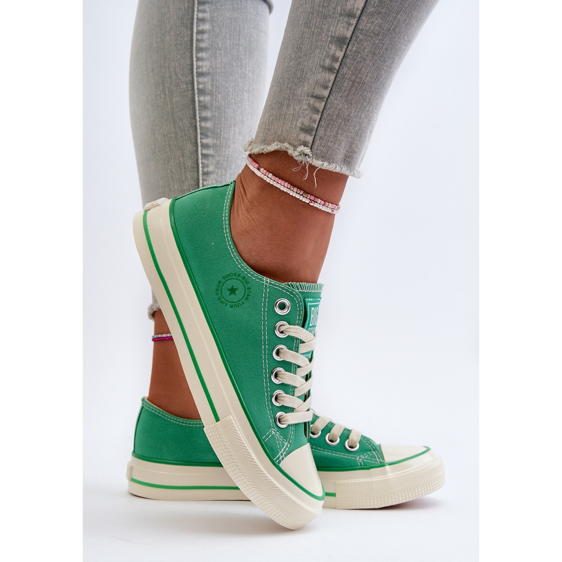 Graças à cor verde simples, esses tênis baixos são fáceis de combinar com vários itens de guarda -roupa. Eles combinam com jeans, saias e até shorts. Escolha os tênis Big Star NN274268 e desfrute não apenas da aparência elegante, mas também conforto todos os dias!