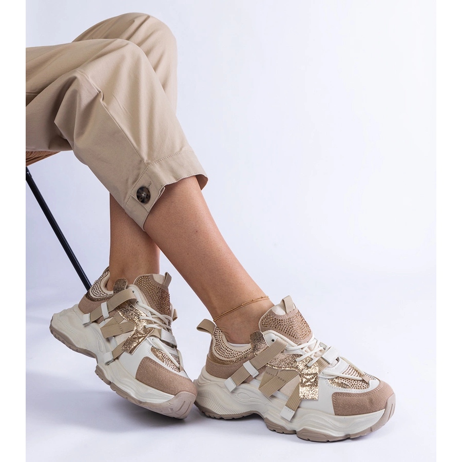 As inserções e acessórios de ouro na forma de zircões dão aos sapatos um brilho único, fazendo -os não apenas se tornar parte do guarda -roupa diário, mas também uma ótima opção para ocasiões mais elegantes. A cor bege é extremamente versátil, o que permite combiná -las facilmente com diferentes estilizações.