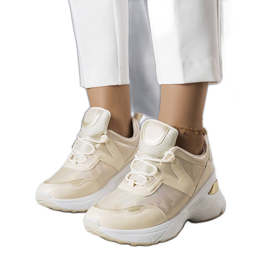 Tênis bege ruais com inserções metálicas - estilo e conforto todos os dias