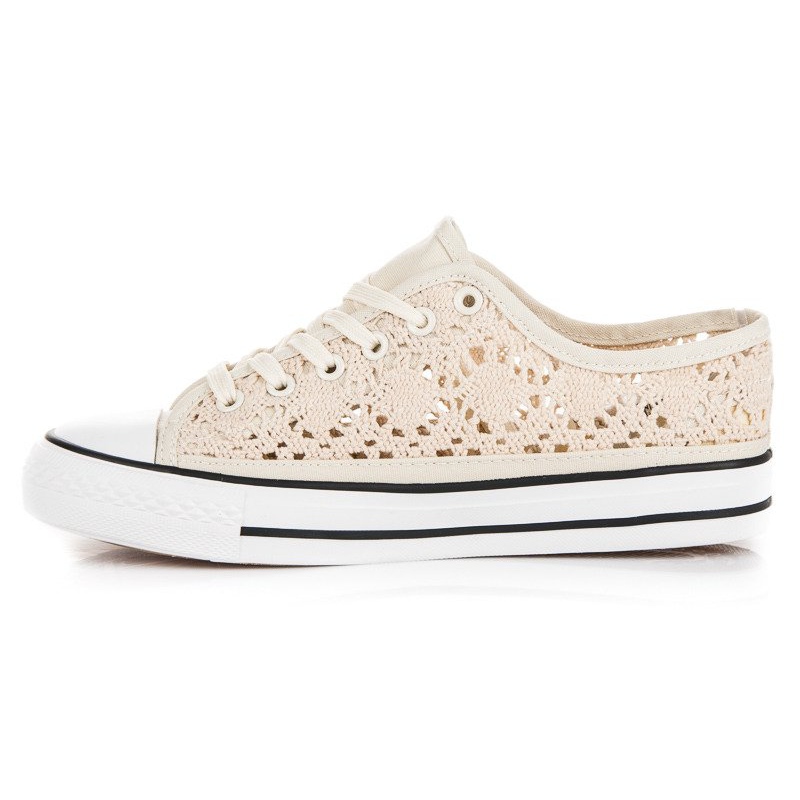 Detalhes: Tênis bege de renda