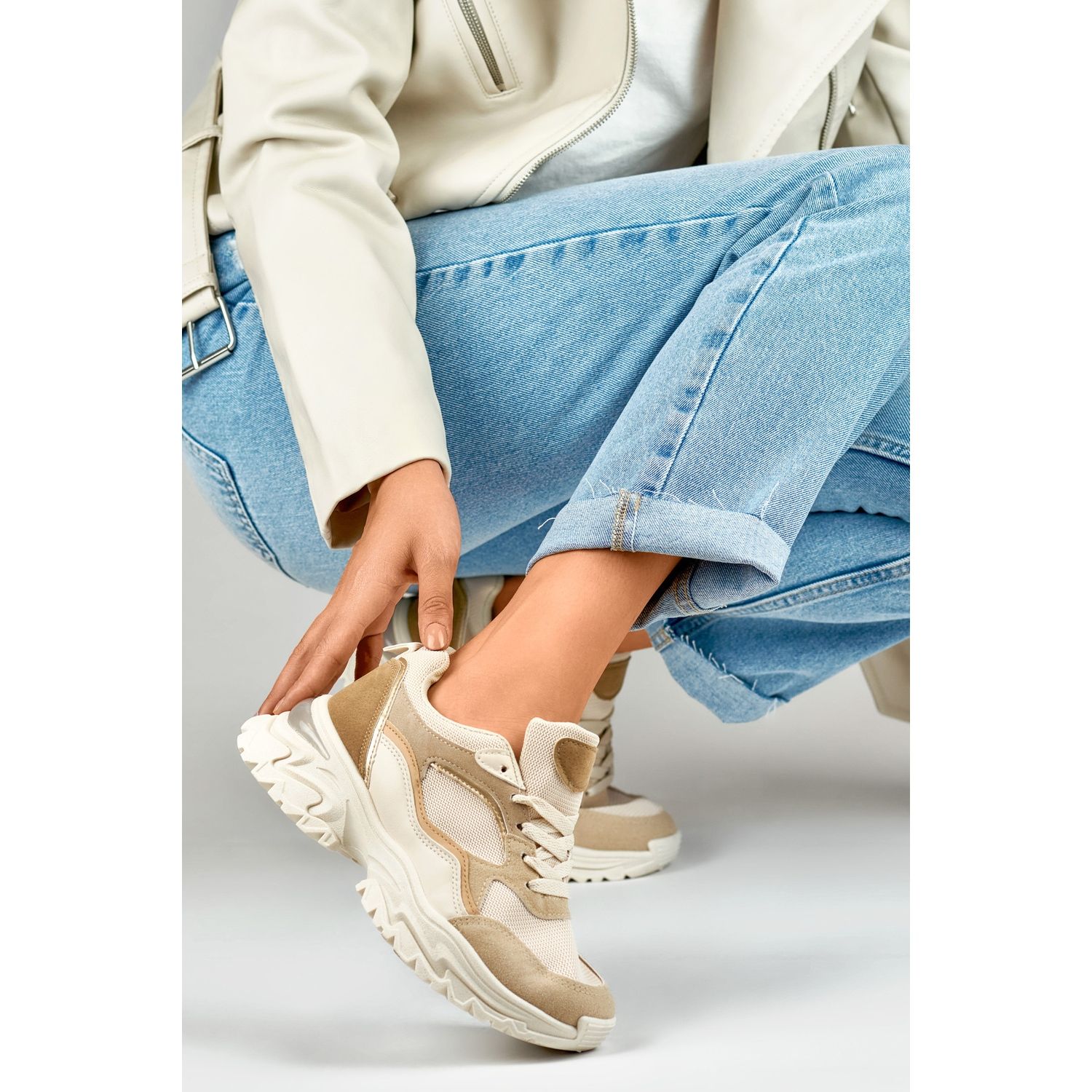 Tênis femininos bege em uma sola branca - corte universal e uma plataforma confortável
