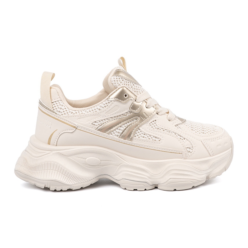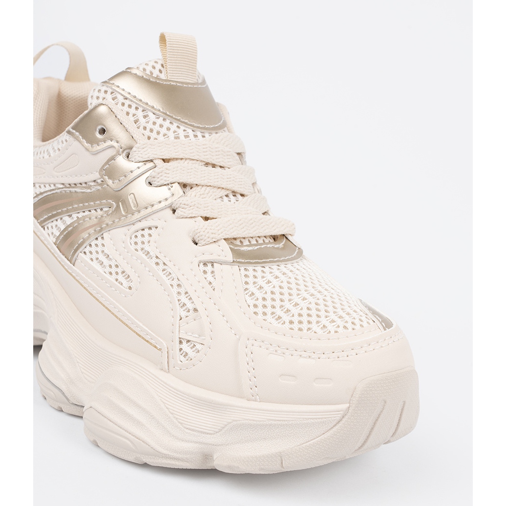 Descubra conforto e estilo graças aos tênis leves -Beige em uma sola grossa, que combina perfeitamente com as últimas tendências de calçados. Esses sapatos esportivos baixos são um ótimo companheiro diariamente e durante viagens de fim de semana. Feito de couro ecológico de alta qualidade, eles garantem uma aparência atraente e conforto.