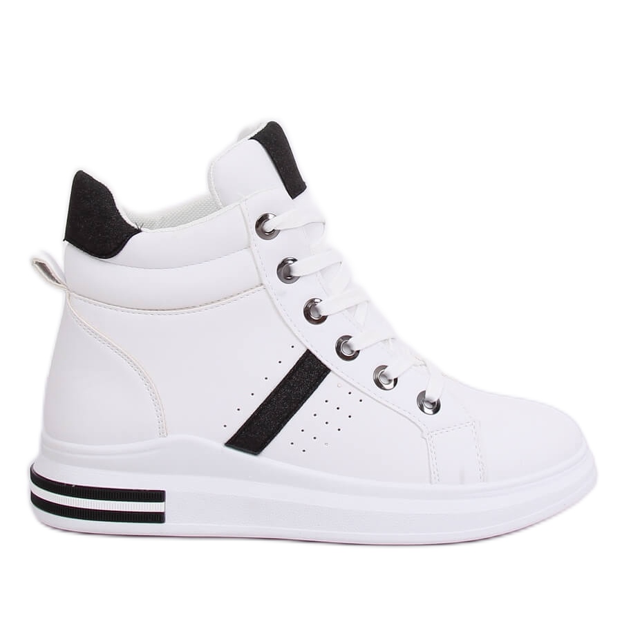 Conheça os ténis cano alto brancos CB-19078 BRANCO/PRETO - perfeitos para qualquer ocasião! Estes tênis femininos com cadarços chamam a atenção pelo seu formato estiloso e inserções brilhantes e brilhantes, que lhes conferem um caráter único. A sola alta, de 3 cm de altura, não só aumenta o conforto de uso, mas também cria um look fashion que combina perfeitamente com vários estilos.