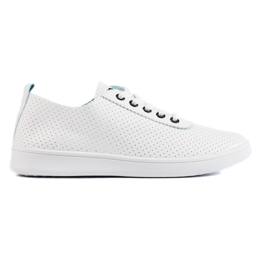 Esses tênis são presos com o laço clássico, o que permite que você combine o calçado às necessidades individuais. Graças ao design simples e elegante, esses tênis brancos clássicos se misturam bem com várias estilizações-de jeans e camisetas para vestidos arejados.
