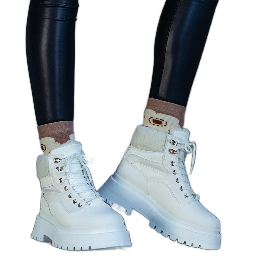Trappers brancos em uma sola grossa, com melhor a ser obrigatória para o pêlo must em todos os amantes da moda de guarda-roupa! Esses sapatos elegantes não apenas se deleitam com sua aparência, mas também oferecem conforto e calor extraordinários nos dias mais frios.