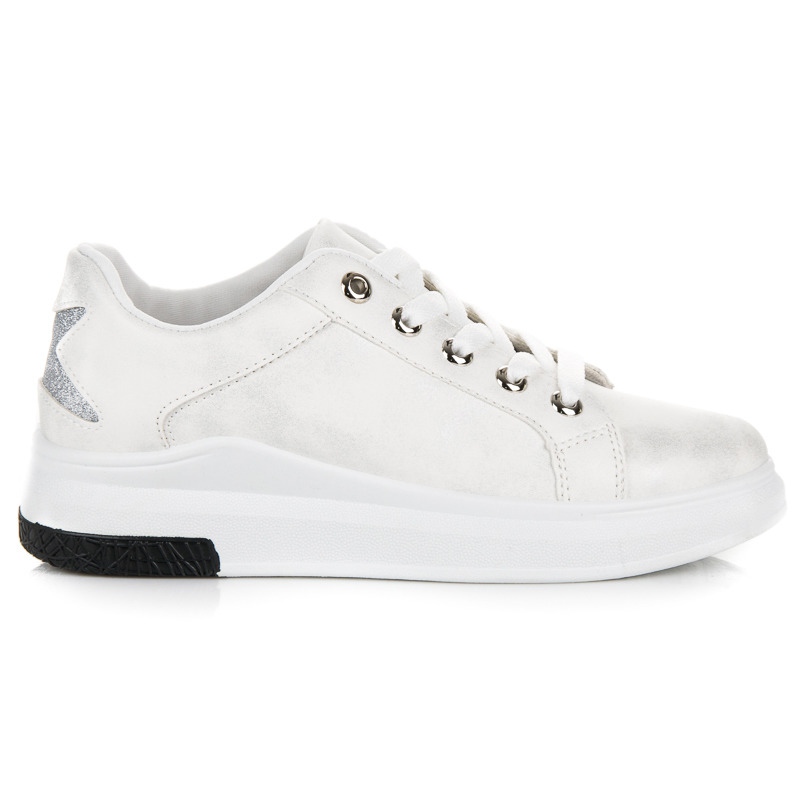 Os tênis brancos com estrela são a escolha perfeita para mulheres que desejam combinar o estilo esportivo com um pouco de originalidade. O design clássico numa elegante cor branca foi enriquecido com uma aplicação de estrela prateada, que lhes confere carácter e os distingue dos restantes modelos. Confeccionados em couro ecológico de alta qualidade, esses tênis seguem a tendência da moda de elegância esportiva, o que os torna o complemento perfeito para diversos estilos do dia a dia.