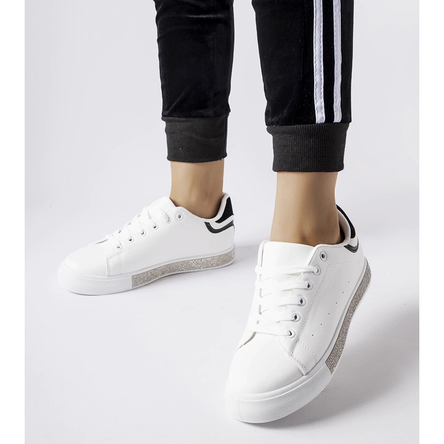 Tênis brancos e brancos dina com zircões modernos, confortáveis e com uma pitada de esplendor