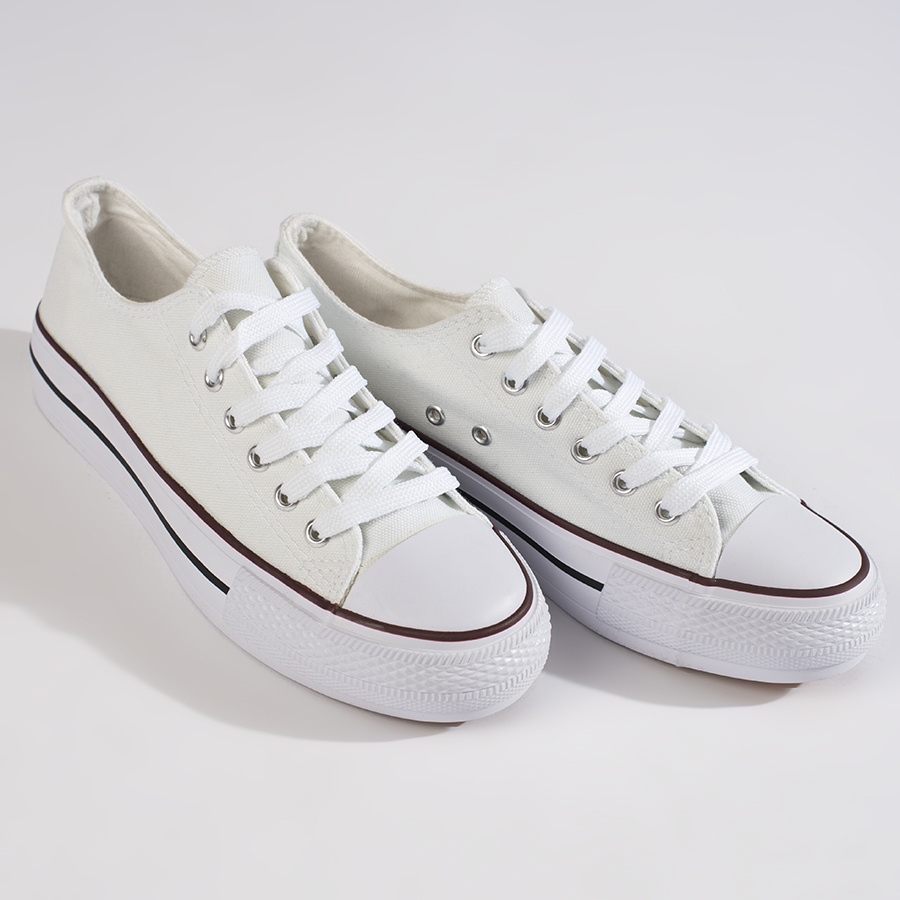 Ao caminhar, você também apreciará uma confortável plataforma de 4 cm de altura, o que não apenas adiciona estilo, mas também aumenta opticamente as pernas. A sola com um piso, feita de plástico, fornece adesão adequada em uma variedade de superfícies, o que torna esses tênis a escolha perfeita para passear ou fazer compras.
