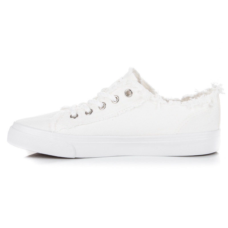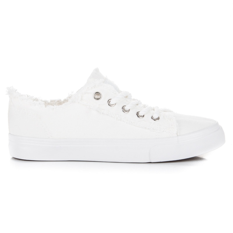 Confeccionado em tecido de alta qualidade, o tênis branco garante conforto o dia todo. A ponta redonda e o salto macio integrado garantem conforto, e o fecho com cadarço permite um ajuste perfeito ao pé. Graças à sola de borracha com banda de rodagem, cada gota de chuva ou ligeiro desnível do terreno não constitui um obstáculo e você pode desfrutar de um passo confiante.