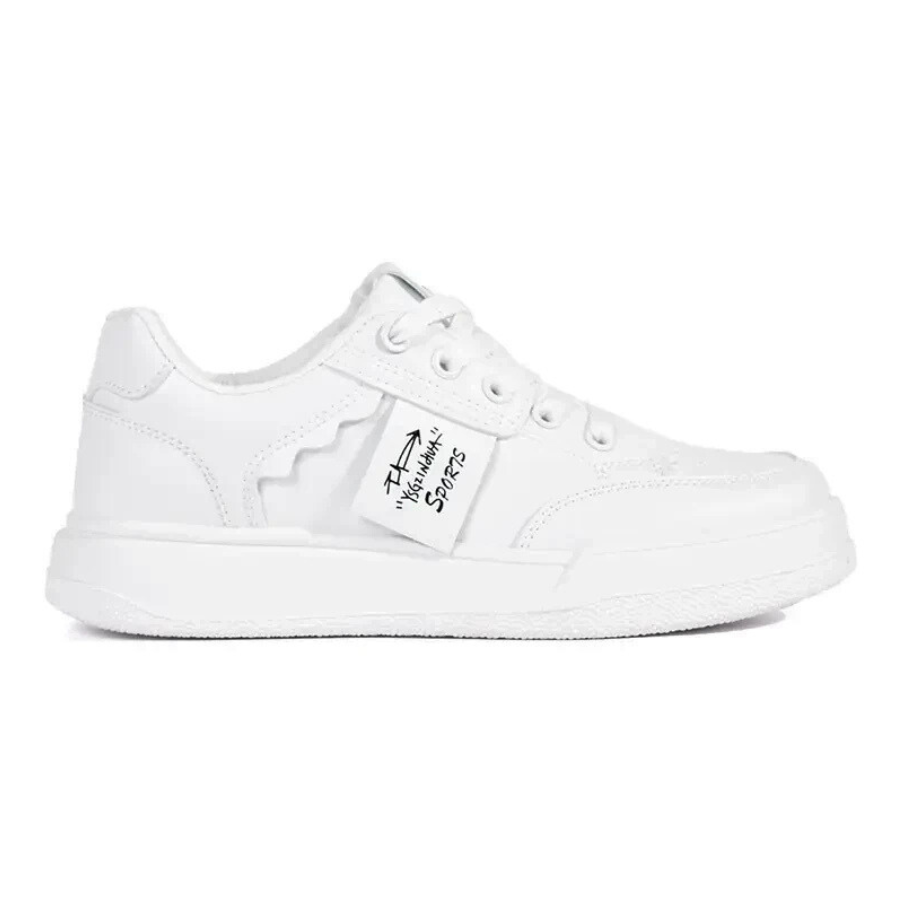 O interior dos sapatos foi finalizado com um material 100% têxtil, o que garante conforto e respirabilidade, e o nariz redondo lhes dá um charme sutil. A inserção de tecido torna cada passo agradável e leve. Os tênis brancos na plataforma são obrigatórios no guarda-roupa de todas as mulheres que querem parecer na moda e se sentir confortáveis.
