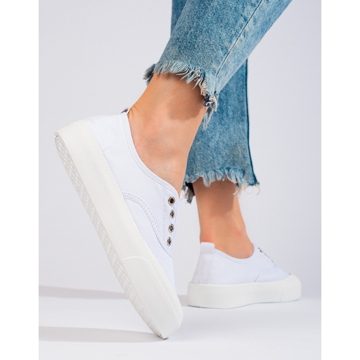 O estilo esportivo e casual dos tênis faz deles um complemento perfeito para jeans, vestidos de verão e saias. Branco - uma cor que combina com quase tudo, acrescentando frescor e leveza a cada estilo. A sola de borracha garante estabilidade e é resistente à abrasão, e a cor branca da sola harmoniza com todo o design.