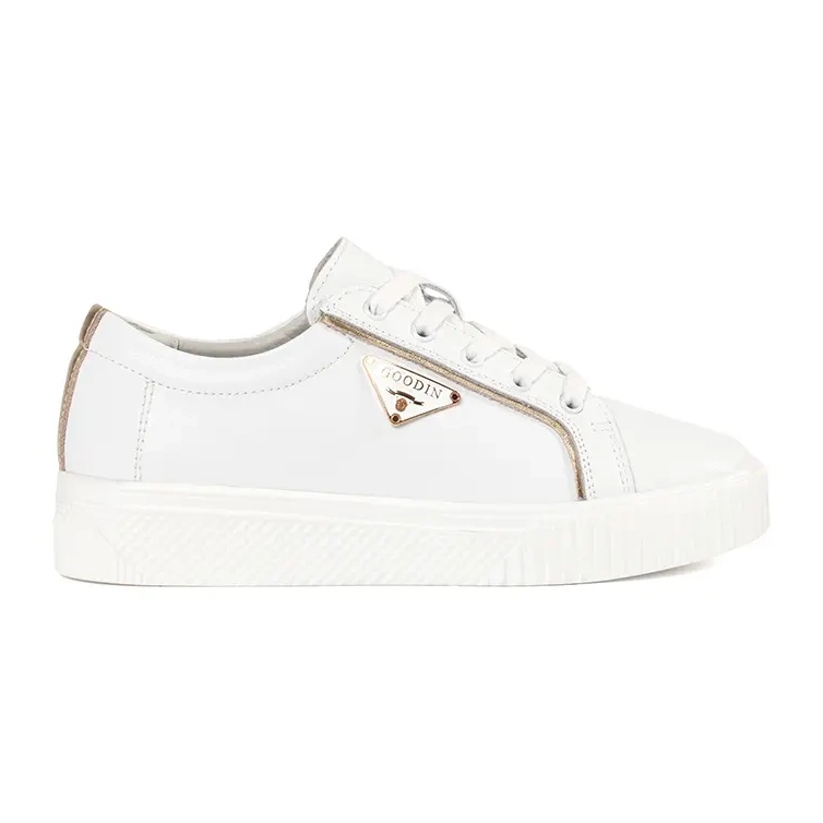 Detalhes: Goodin Tênis brancos de couro em uma sola grossa