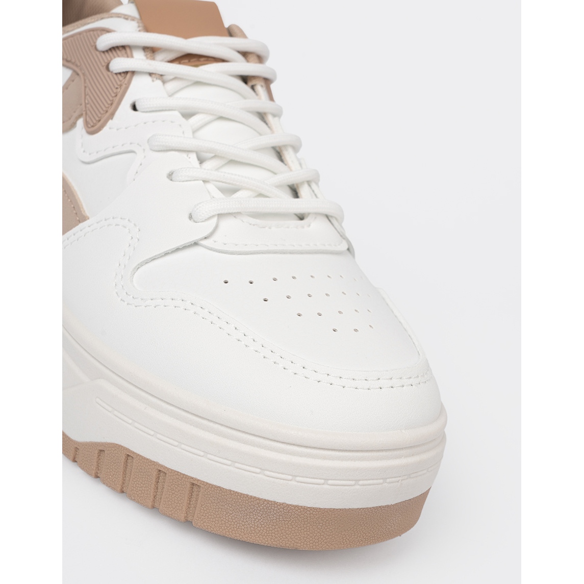 Detalhes: Shelvt Tênis brancos e bege na plataforma