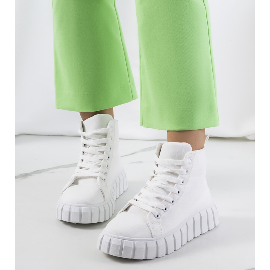 Apresentamos os ténis plataforma Horizo brancos da marca BM, que se tornarão um elemento indispensável no seu guarda-roupa de verão. Este modelo é caracterizado por um corte alto e moderno que adicionará um caráter único a qualquer estilo. Graças à sólida plataforma de quatro centímetros, você alcançará não só conforto, mas também um visual único.