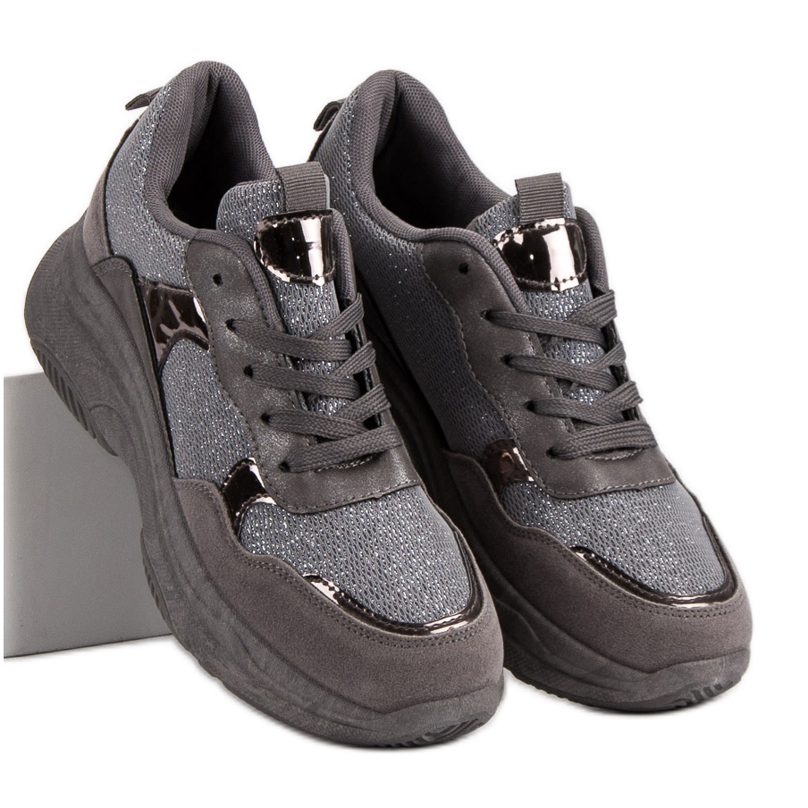 Descubra uns ténis plataforma cinzentos e brilhantes que se vão tornar num elemento indispensável do seu guarda-roupa! Estes tênis femininos exclusivos, confeccionados em couro ecológico envernizado, combinam elegância e conforto. Com uma plataforma de 5 centímetros, caracterizada por um formato esguio e leveza, são uma excelente opção tanto para o uso diário como para passeios de fim de semana à montanha ou passeios relaxantes no parque.