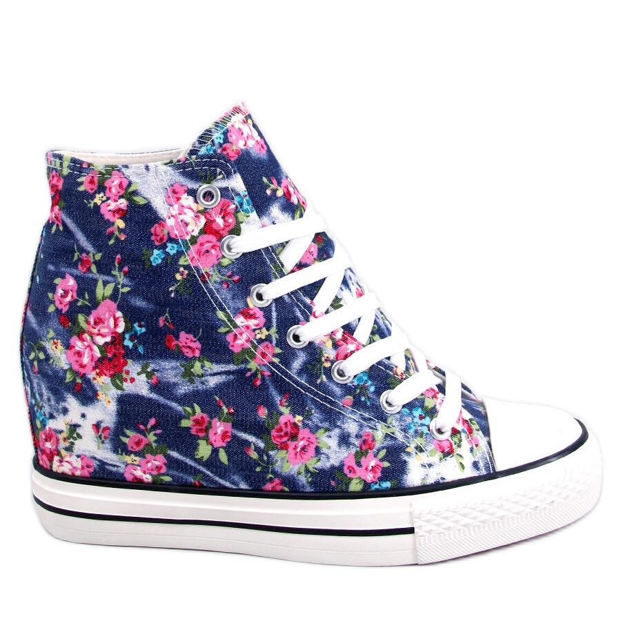 **Tênis BM de cunha alta com flores Paradis Azul marinho**