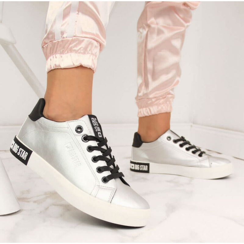 Apresentamos extraordinários tênis de cano baixo confeccionados em couro ecológico Big Star W II274034 na moderna cor prata. Estes sapatos únicos, dedicados à mulher, são a escolha perfeita para o uso diário, aliando estilo ao conforto.