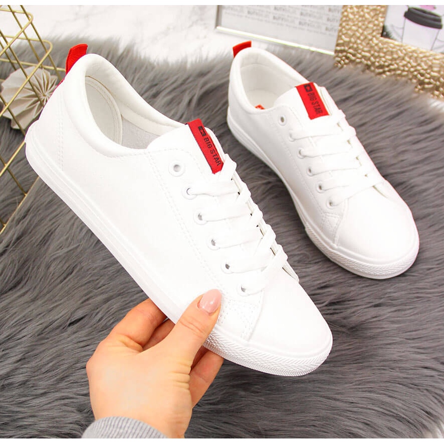 Descubra elegância e conforto em um só lugar! Os tênis baixos de couro ecológico branco Big Star DD274685 são a escolha perfeita para mulheres que valorizam estilo e conforto. O design clássico destes ténis faz com que combinem perfeitamente com vários estilos - do casual ao um pouco mais elegante.