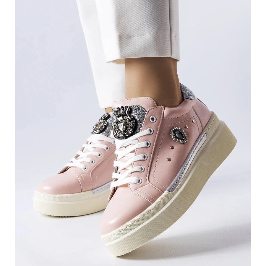 Os tênis rosa em um cuillerier baixo do fabricante D/GMR são uma proposta que se encaixa perfeitamente nas últimas tendências da moda. O modelo Selma é um sucesso desta temporada, oferecendo uma combinação incomum de estilo e conforto.