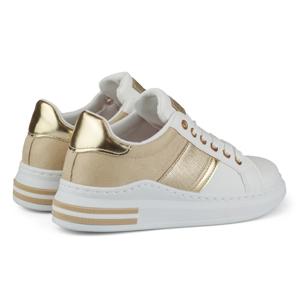 Apresentamos tênis femininos casuais brancos e bege que se adaptam perfeitamente às tendências de primavera e verão. Estes calçados estilosos de uma marca renomada chamam a atenção pelo seu design elegante e esportivo. Confeccionados em couro ecológico e camurça de alta qualidade, proporcionam não só um visual fashion, mas também durabilidade e conforto de uso.