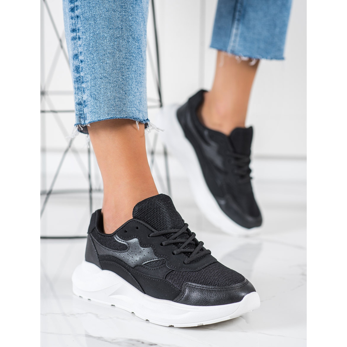 Os tênis casuais pretos da SHELOVET se diferenciam por um salto macio e agradável ao toque e um design sem salto, o que os torna confortáveis de usar mesmo durante longas horas de caminhada. Além disso, a plataforma de 4,5 cm de altura confere-lhes um carácter moderno, valorizando a silhueta.