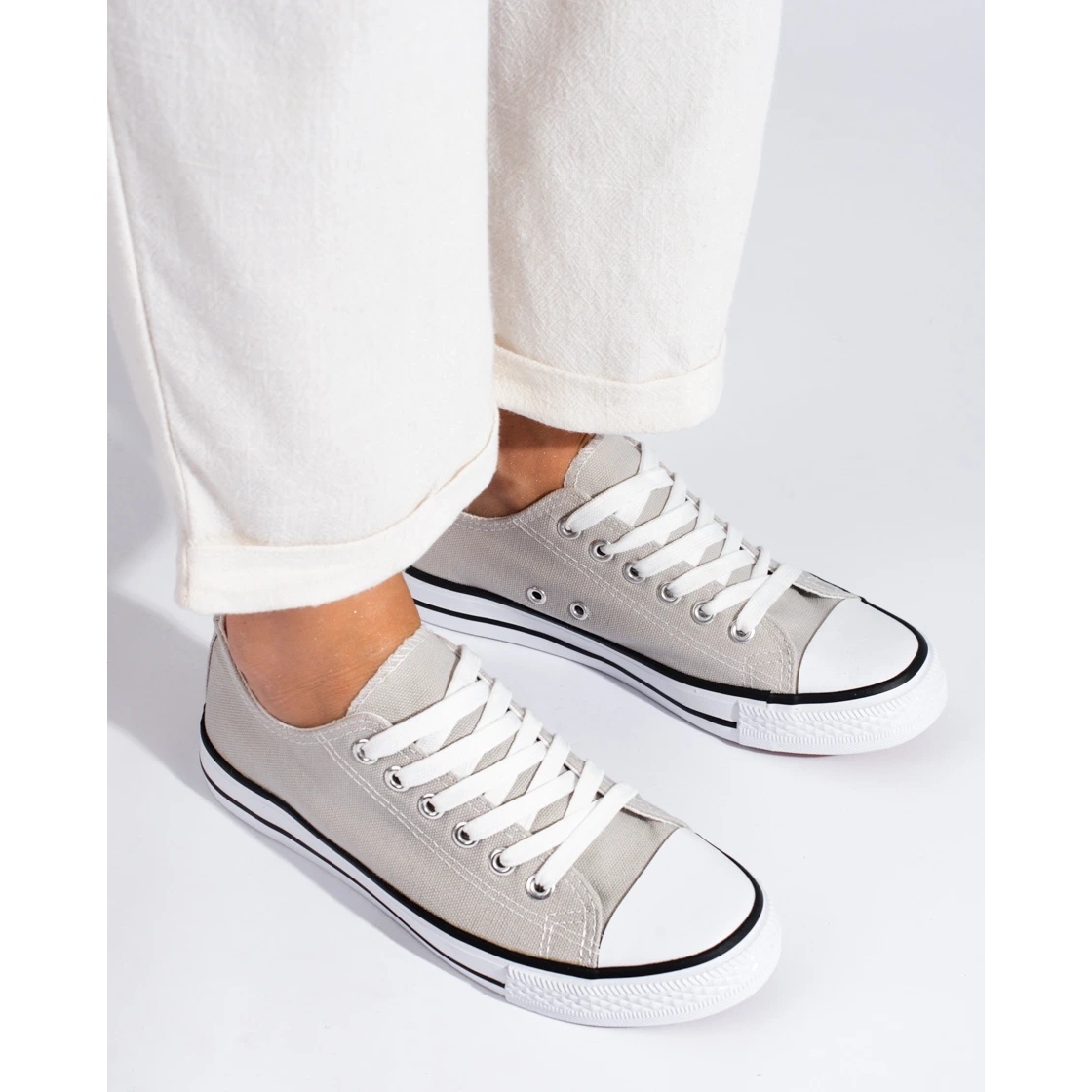 Os tênis cinza são calçados baixos femininos de estilo esportivo, perfeitos para o uso diário durante todo o ano. Fabricado em material têxtil, com sola de borracha rasteira (plataforma de 2 cm) - leve, confortável e fácil de combinar com vários estilos.