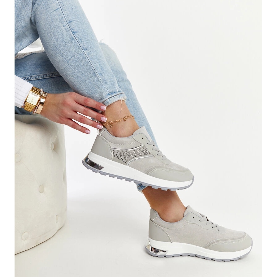 Seu design moderno com nariz redondo os faz se misturar bem com várias estilizações de verão, de casual a mais elegante. A cor cinza, com detalhes em prata delicados, se encaixa nas tendências atuais, e a paleta de cores moderada faz com que você possa combinar tênis com jeans e vestidos arejados.