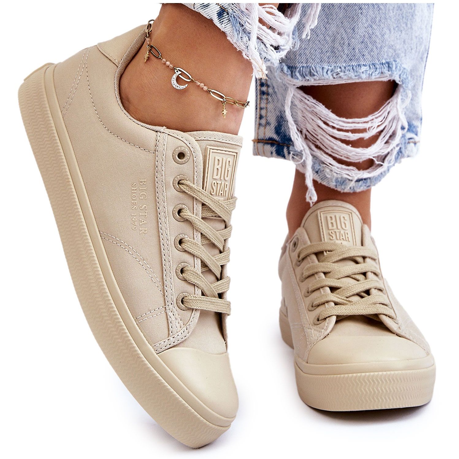 Ao escolher o tênis baixo clássico Big Star LL274094, você está escolhendo um produto que é a combinação perfeita de moda, funcionalidade e conforto de uso. Esta variação bege do calçado urbano certamente se tornará um elemento indispensável do seu guarda-roupa não só na primavera e no outono.