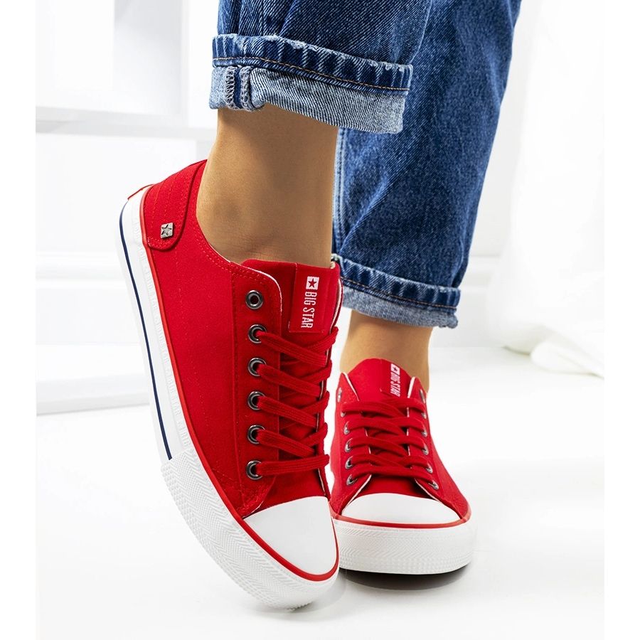 Big Star DD274339 - tênis clássicos femininos em uma cor vermelha intensa. Baixo, renda -up e confortável - perfeito para estilizações urbanas todos os dias quando você deseja adicionar um pouco de energia à aparência.