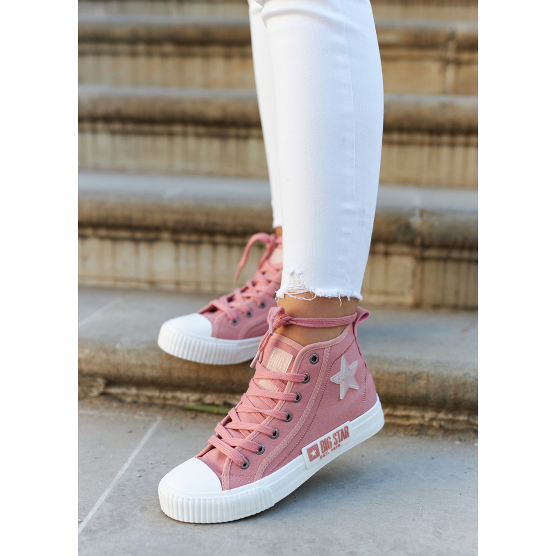 Disponível na moderna cor rosa, esses tênis também se destacam com um sutil logotipo Big Star colocado na parte externa da parte superior. A altura da plataforma é de apenas 2 cm, o que os torna confortáveis e leves para usar durante todo o dia.