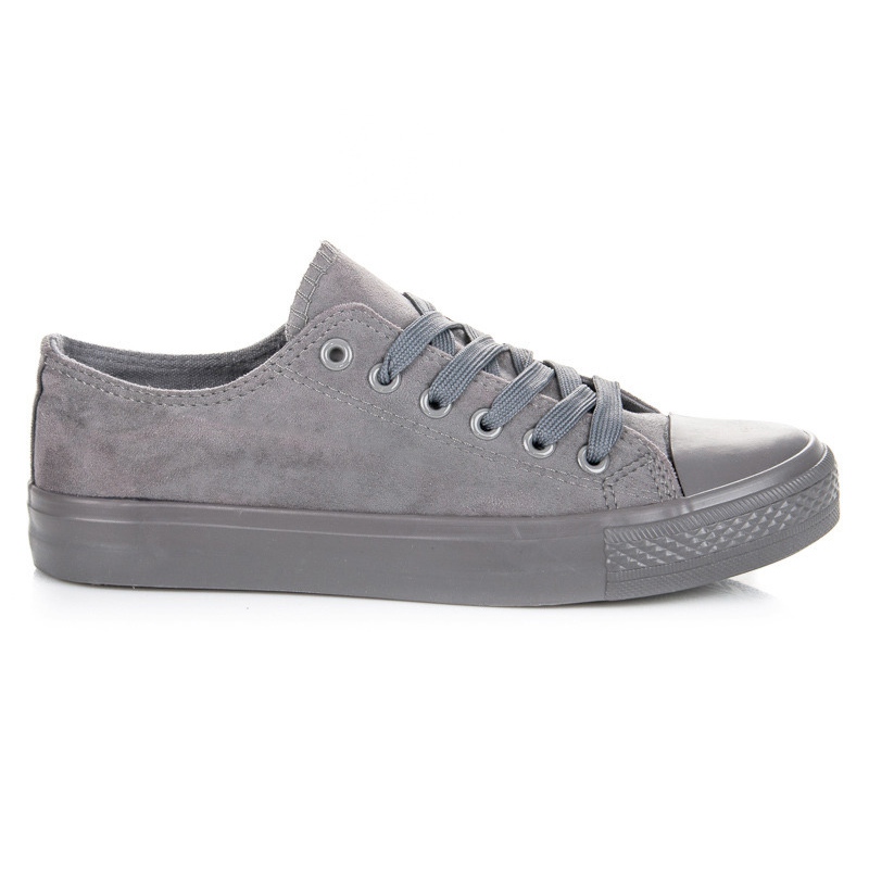 Os ténis caracterizam-se pela biqueira redonda, o que lhes confere um aspecto clássico, e a sua cor cinzenta universal faz com que se adaptem perfeitamente a vários estilos - tanto casuais como ligeiramente mais elegantes. A altura do salto de 3 cm garante estabilidade adequada e conforto de uso durante todo o dia.