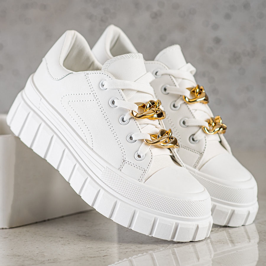 Detalhes: SHELOVET Tênis com corrente de moda branco
