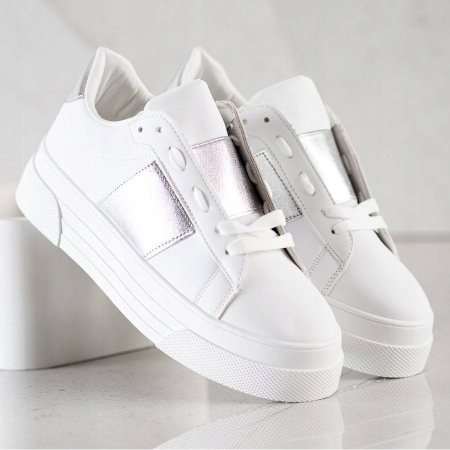 Detalhes: SHELOVET Tênis com couro ecológico na plataforma branco